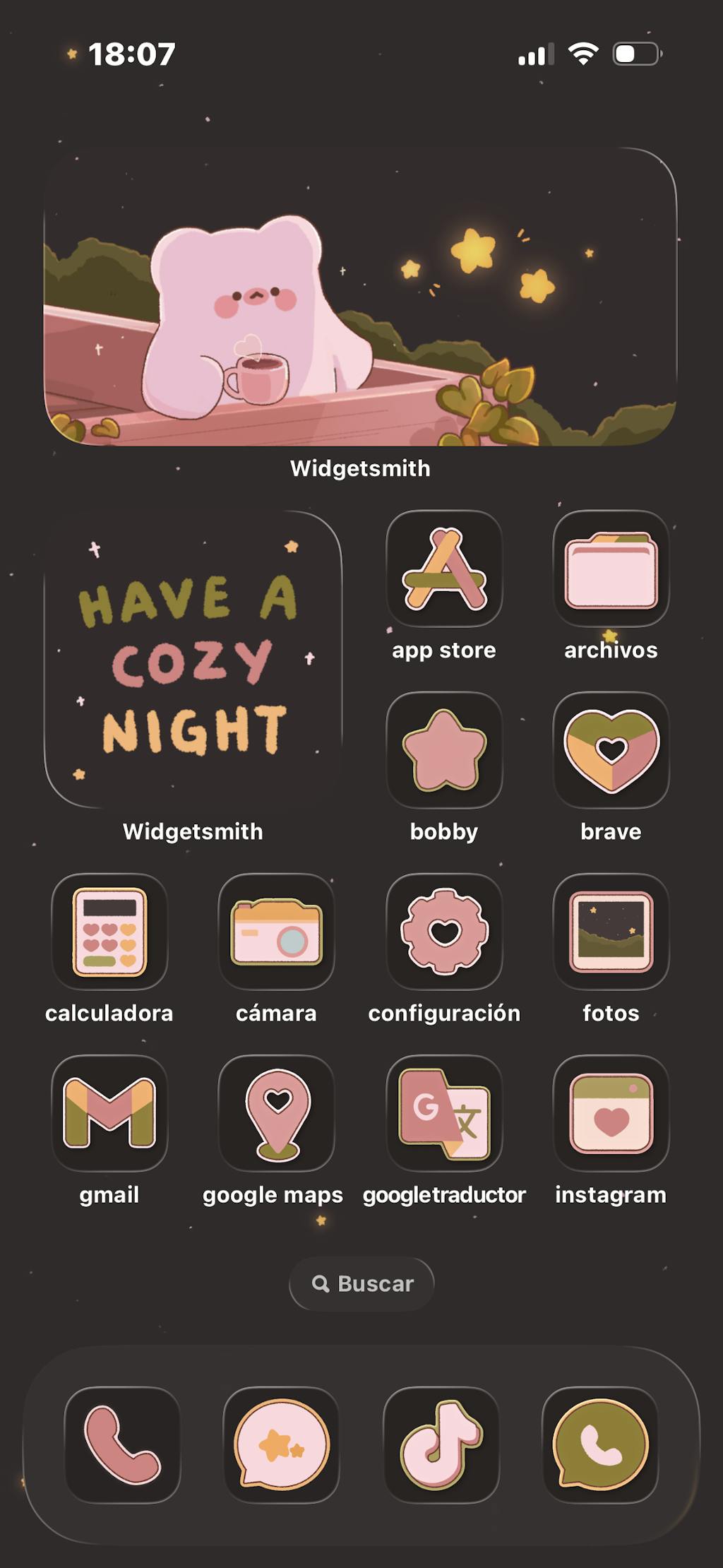 Relax with Mochi on a rooftop under the night sky! This theme features a dark, warm-toned base contrasted with summer night colours~ 🌟🌈🍃 Created with icons that have a transparent effect against the wallpaper, this theme brings a minimalistic, cute and comforting aesthetic to your devices. 🐻❄️💖📱