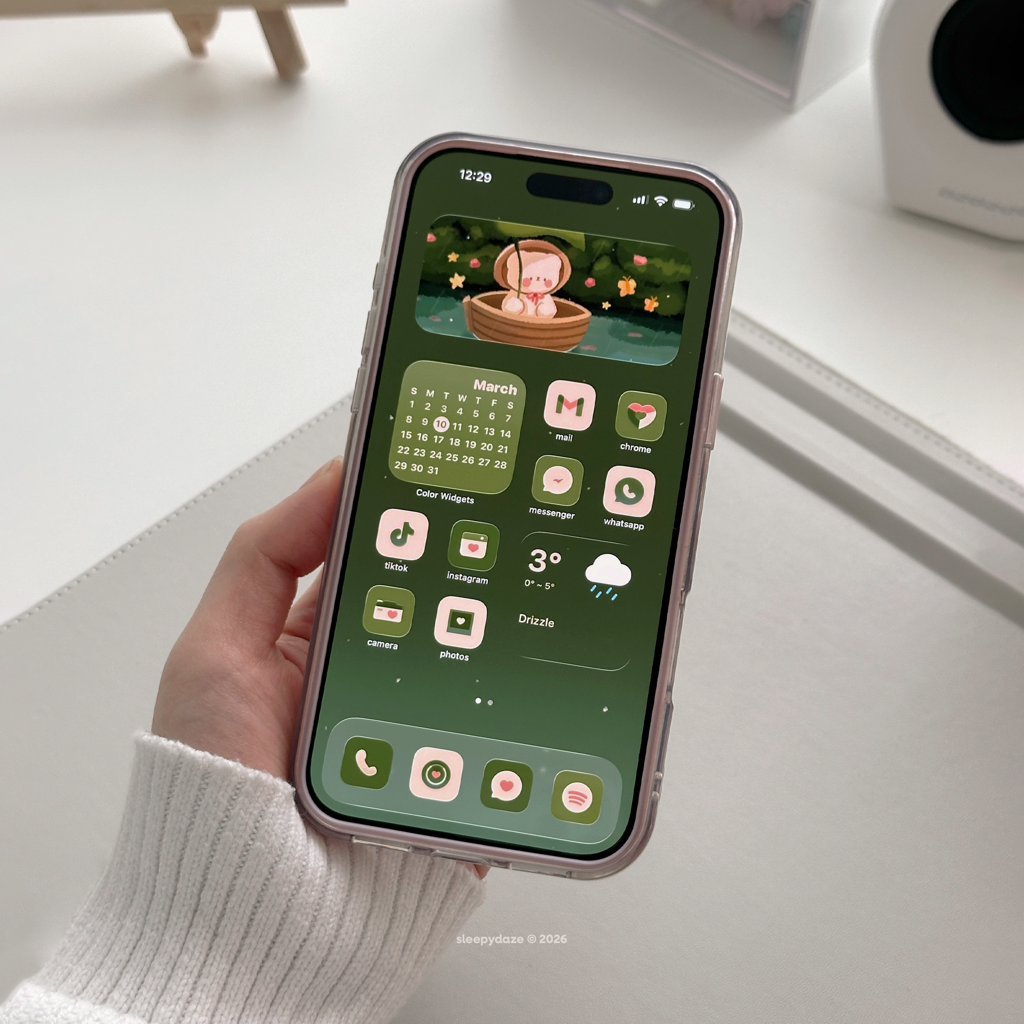 [2026 UPDATE!] Enjoy a rainy spring day in this cozy & mellow green palette! Float through a calm lake on a wooden boat and explore the lush greenery that surrounds you. This theme is created with a darker, comforting palette to help you relax and transport you to a tranquil place~ 🌲🌷🌧