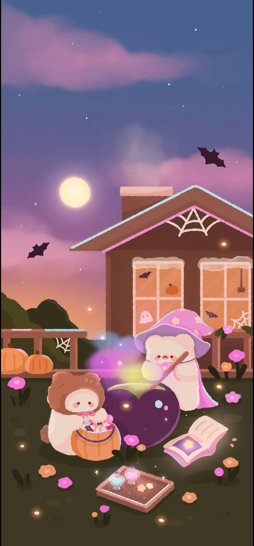 Welcome a magical Halloween with Mochi in this day to night wallpaper pack! 🐻‍❄️🔮✨ Nothing seems too out of the ordinary during the day except for some regular Halloween decorations and costumes, but watch the magic come alive at night!~ 🪄💗