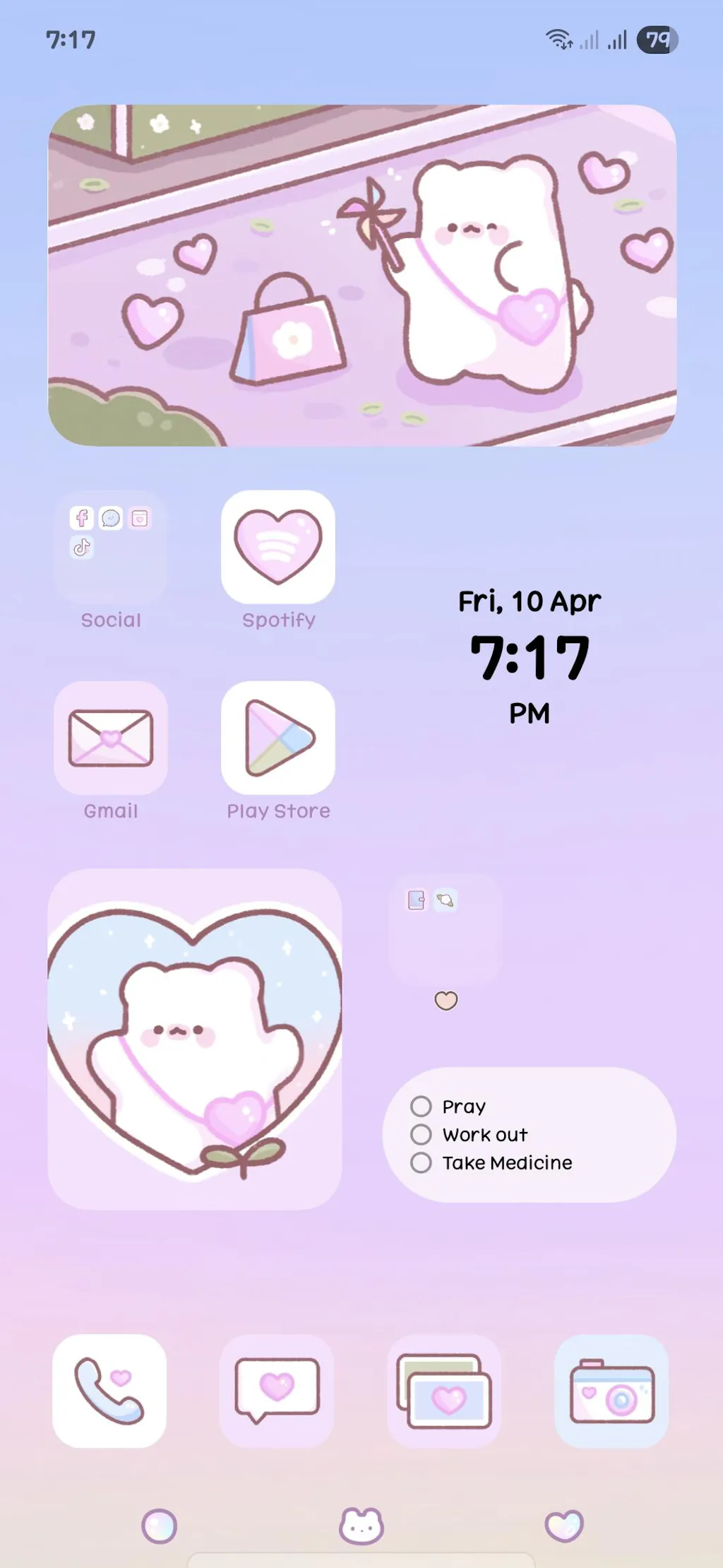 Enjoy a lovely day outside with Mochi in this cute and happy theme. 🍬💕 A sweet and soft candy-like palette filled with hearts and flowers to brighten up your mood whenever you look at your phone. 💖